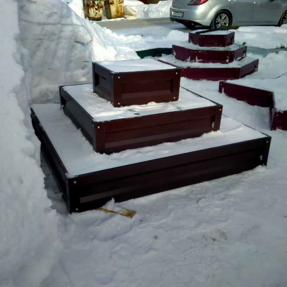 Клумба трехъярусная квадратная цветная